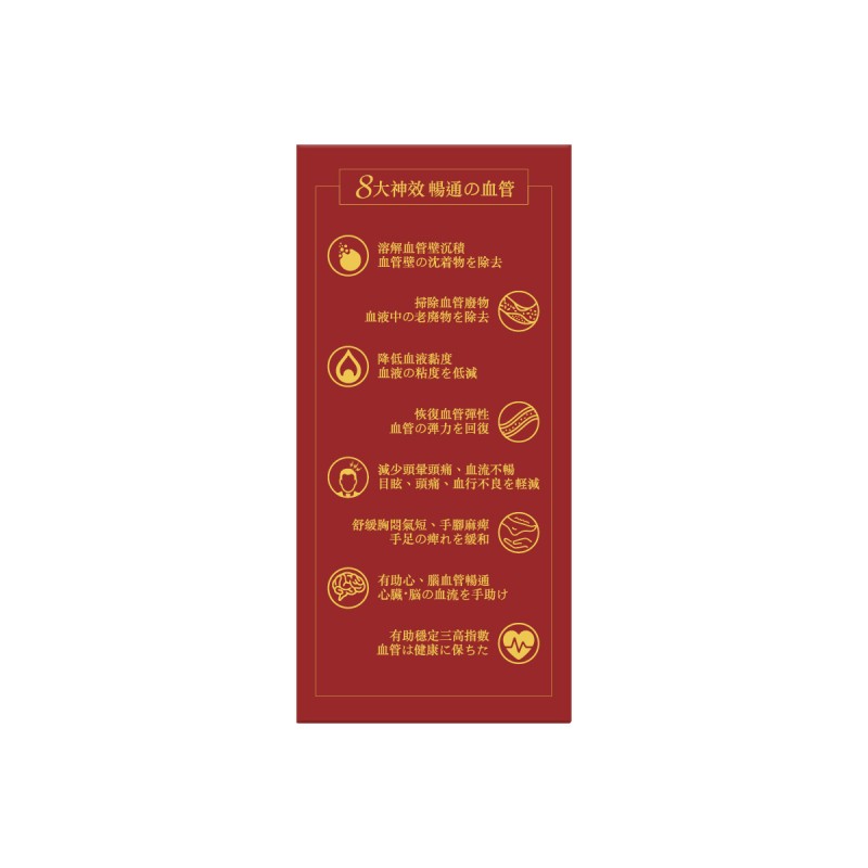 高抗氧化及血管調節作用,調節血管壁壓力,保護身體免受自由基細胞損傷,降低壞指數,緩解三高後遺