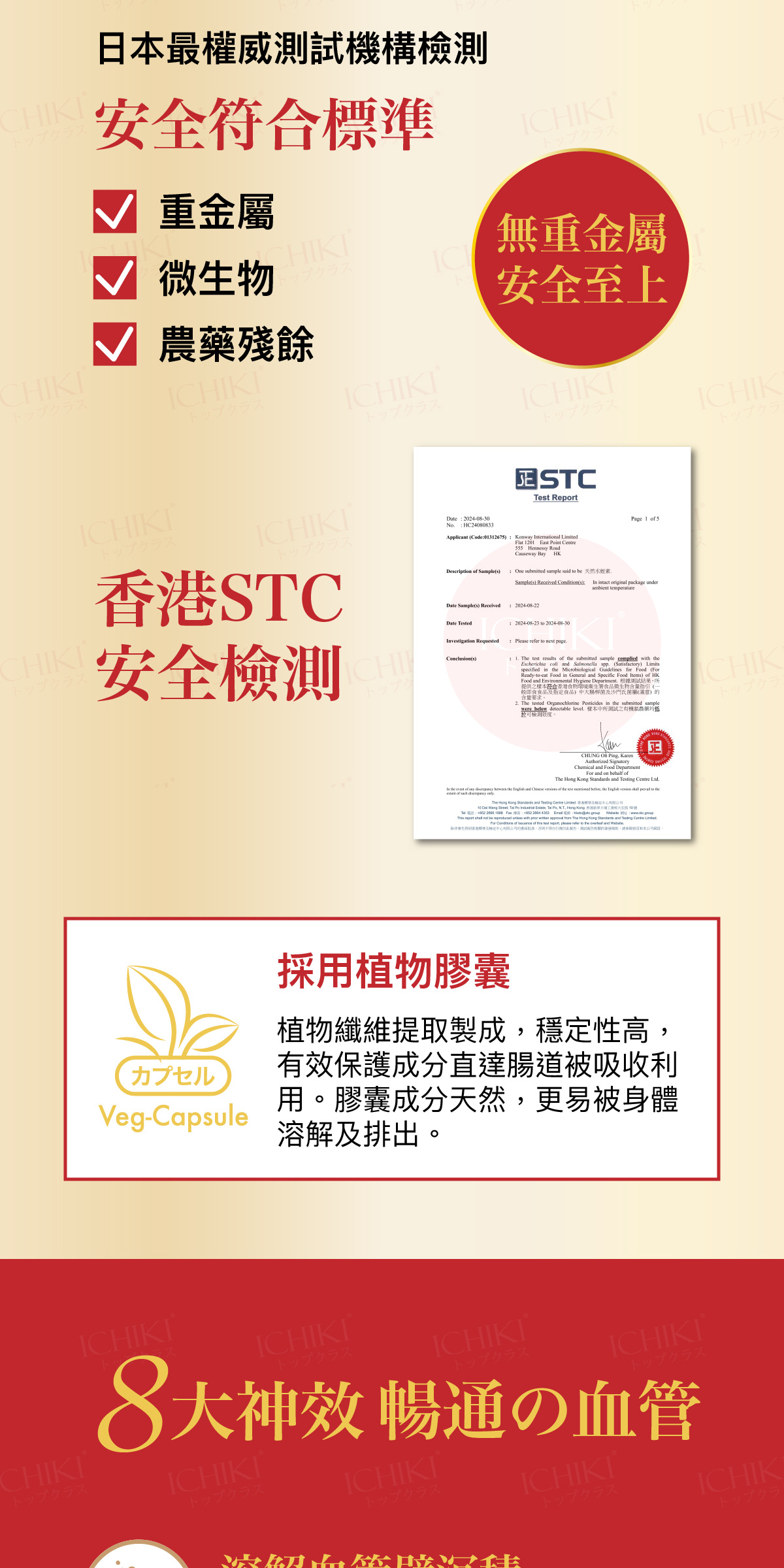 產品獲 JFRL (日本食品分析中心)及 STC 認證,信心之選